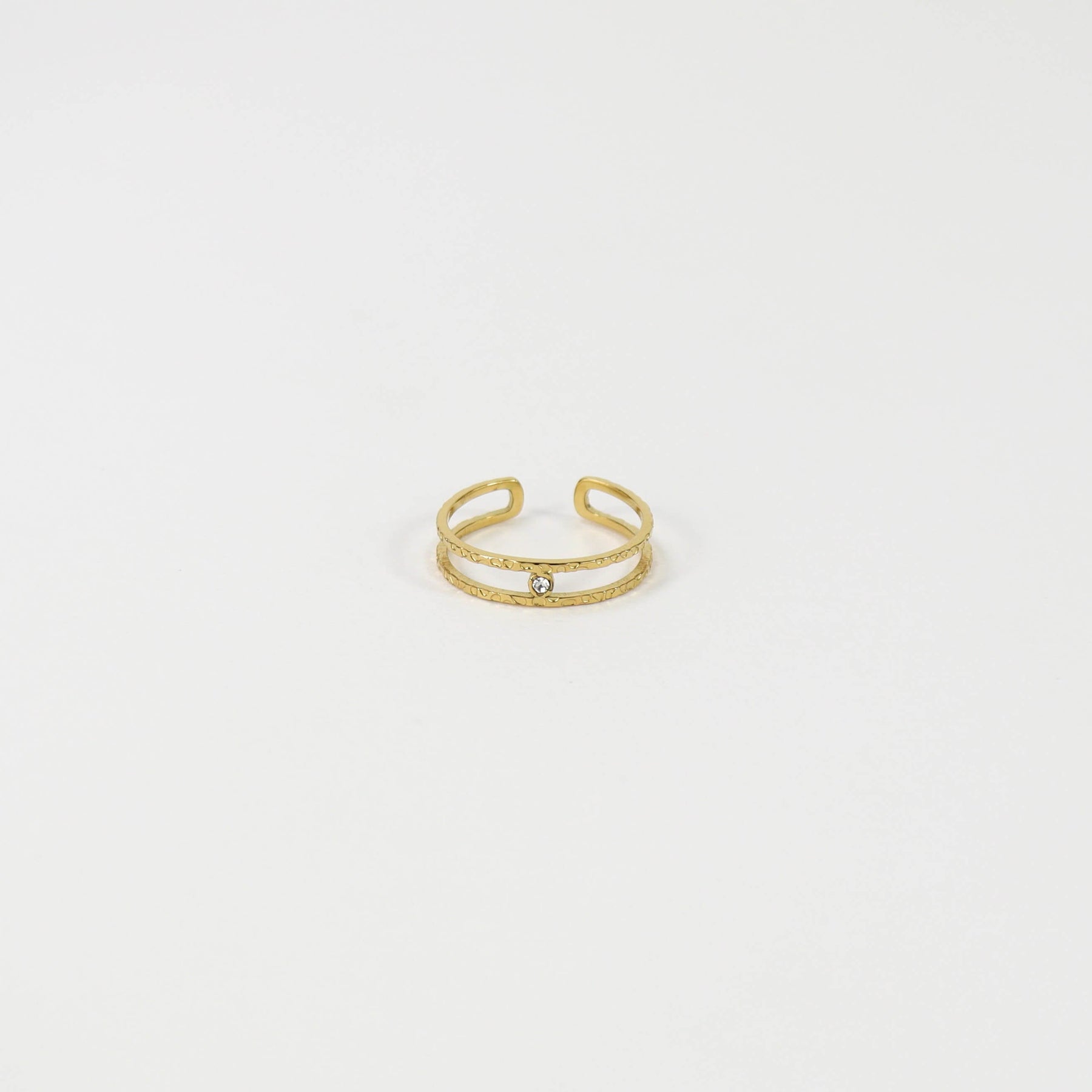 Anillo con detalle de gota de zirconio que añade un toque de elegancia a cualquier look.