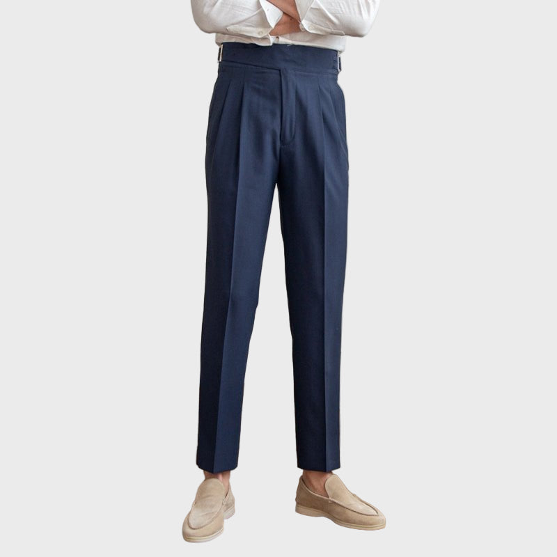 Descubre los pantalones Simon – la fusión perfecta de resistencia y diseño sofisticado en un atractivo azul náutico. Inspirados en la estética italiana, estos pantalones ofrecen: