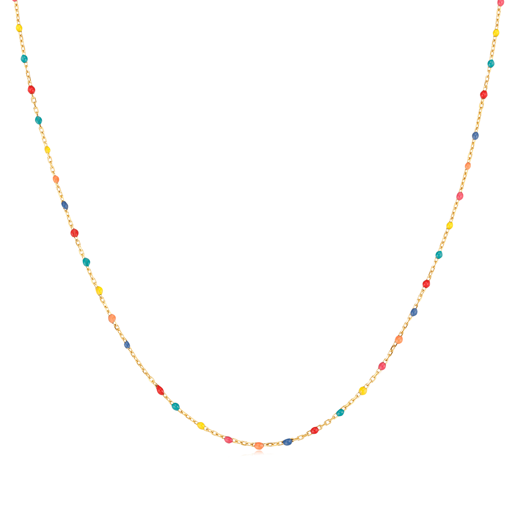 Descubre nuestro collar rodeado de pequeñas bolas coloridas y combinables, elaborado en acero inoxidable de la mejor calidad (316L).