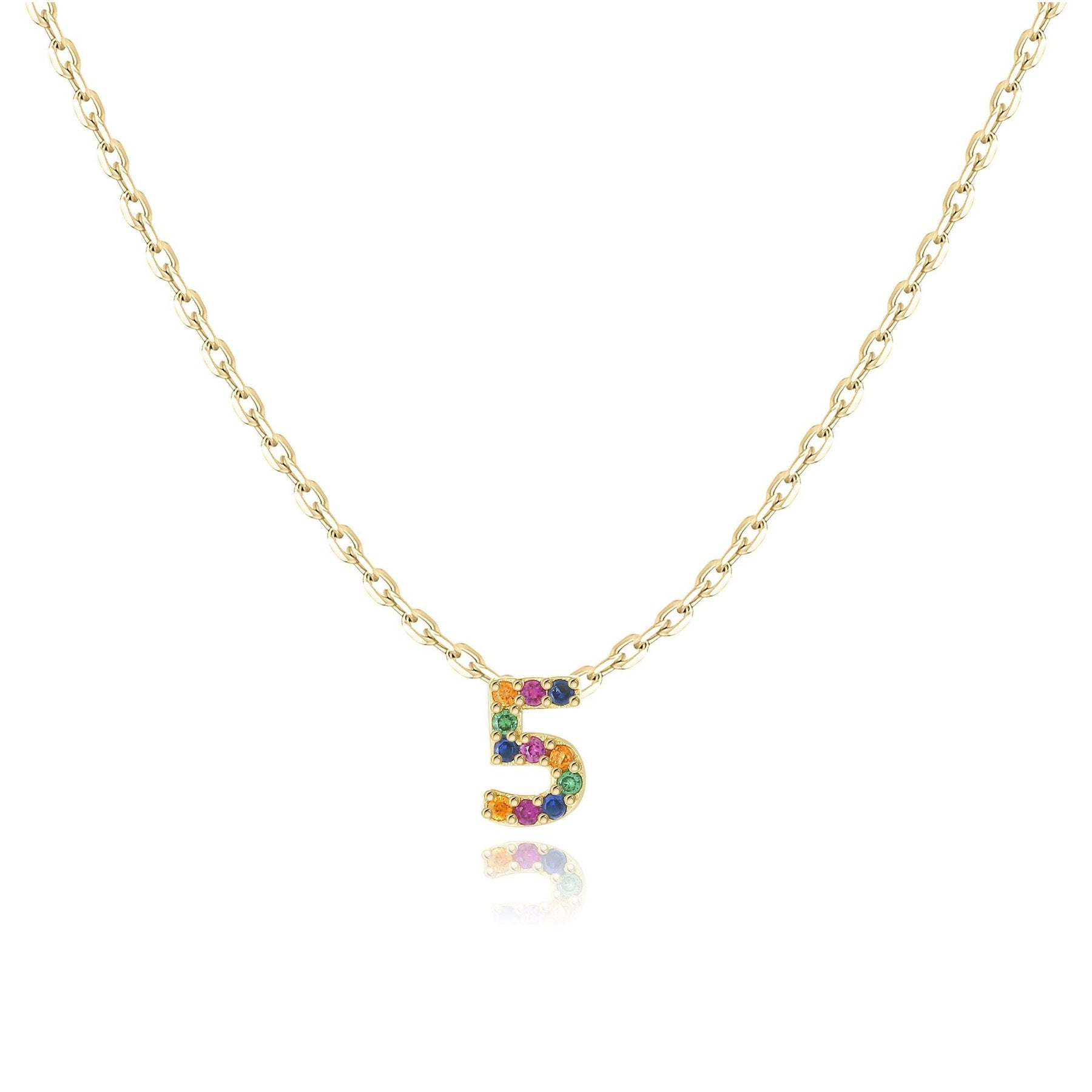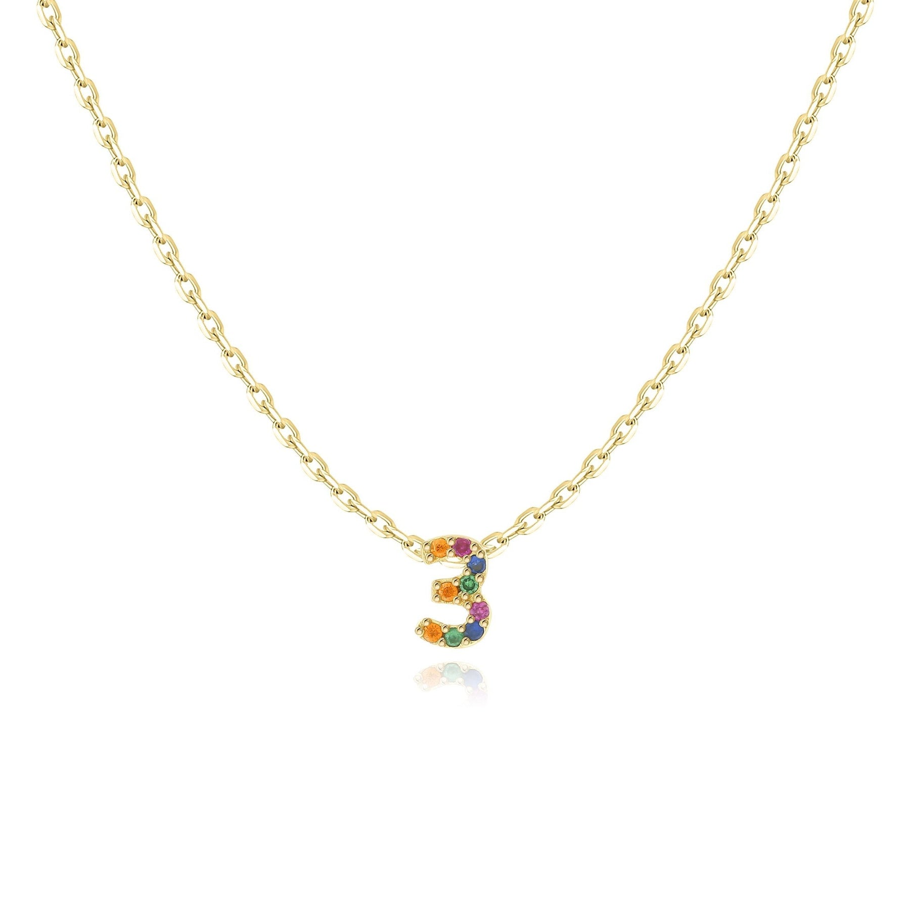Collar con Números decorado con pequeños zircones de colores para que elijas tu favorito. Fabricado en plata esterlina (S925), es la pieza perfecta para destacar tu estilo.