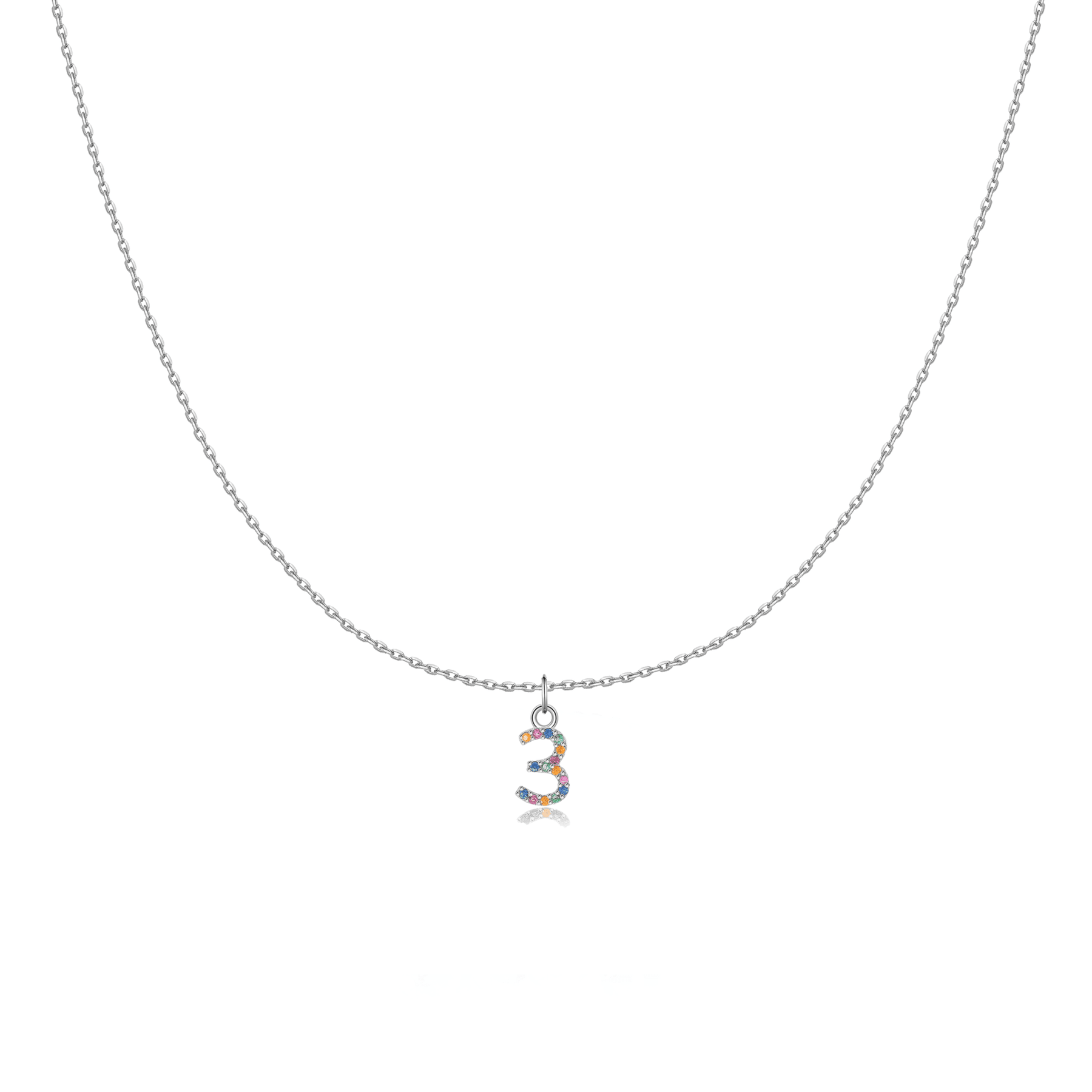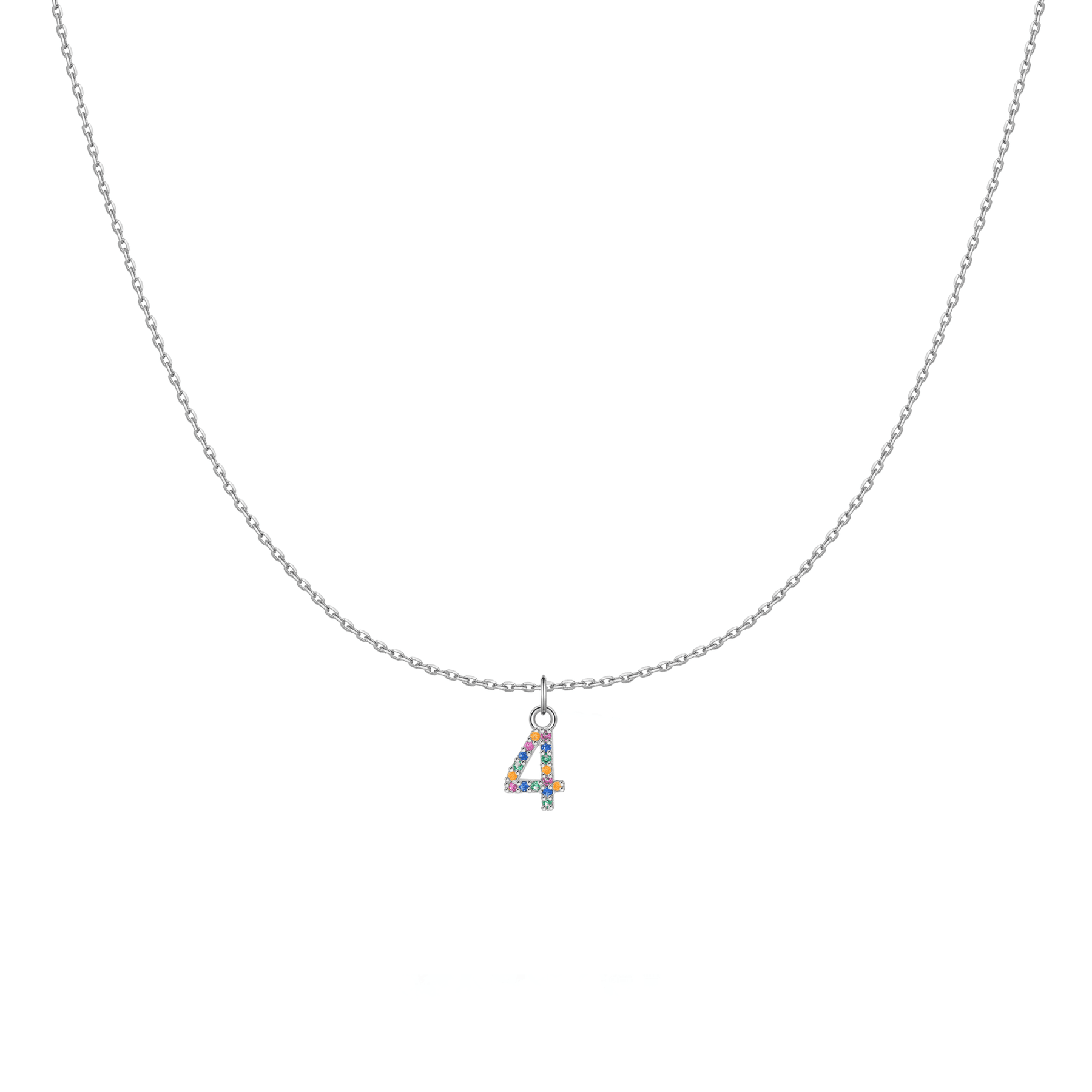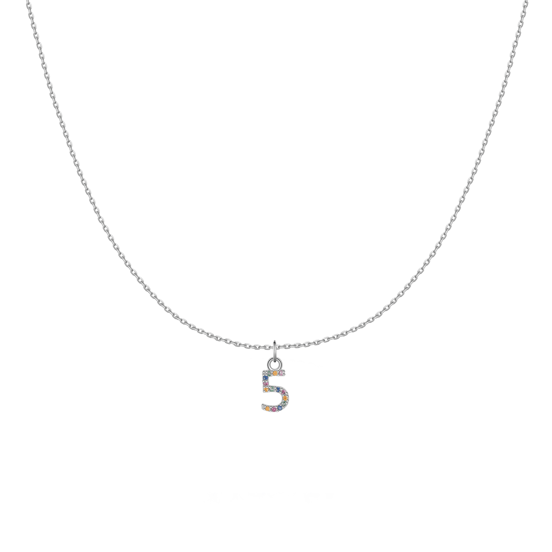 Collar Elegante con Números decorado con circonios de colores, elaborado en plata esterlina (S925).