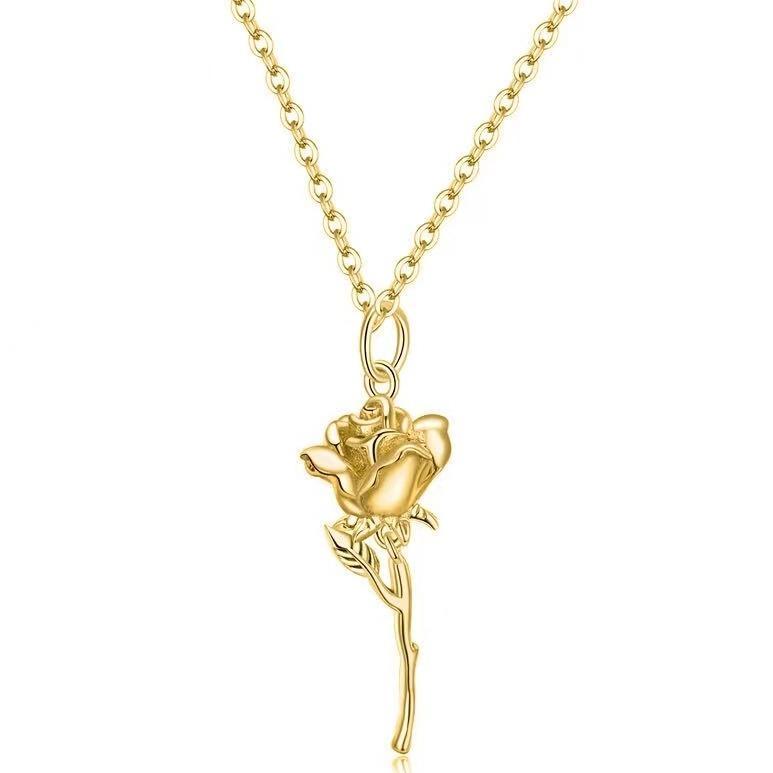 Descubre nuestro elegante collar con un hermoso diseño de rosa, tallo y hojas, elaborado en plata esterlina (S925).