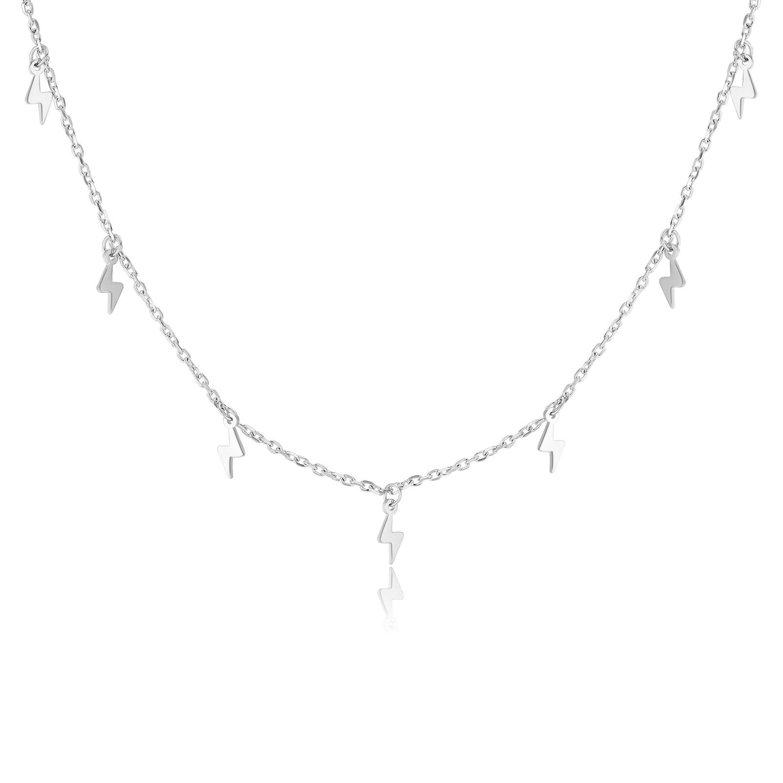 Descubre nuestro collar único, adornado con pequeños símbolos de rayos alrededor de la cadena, fabricado en acero inoxidable de alta calidad (316L).