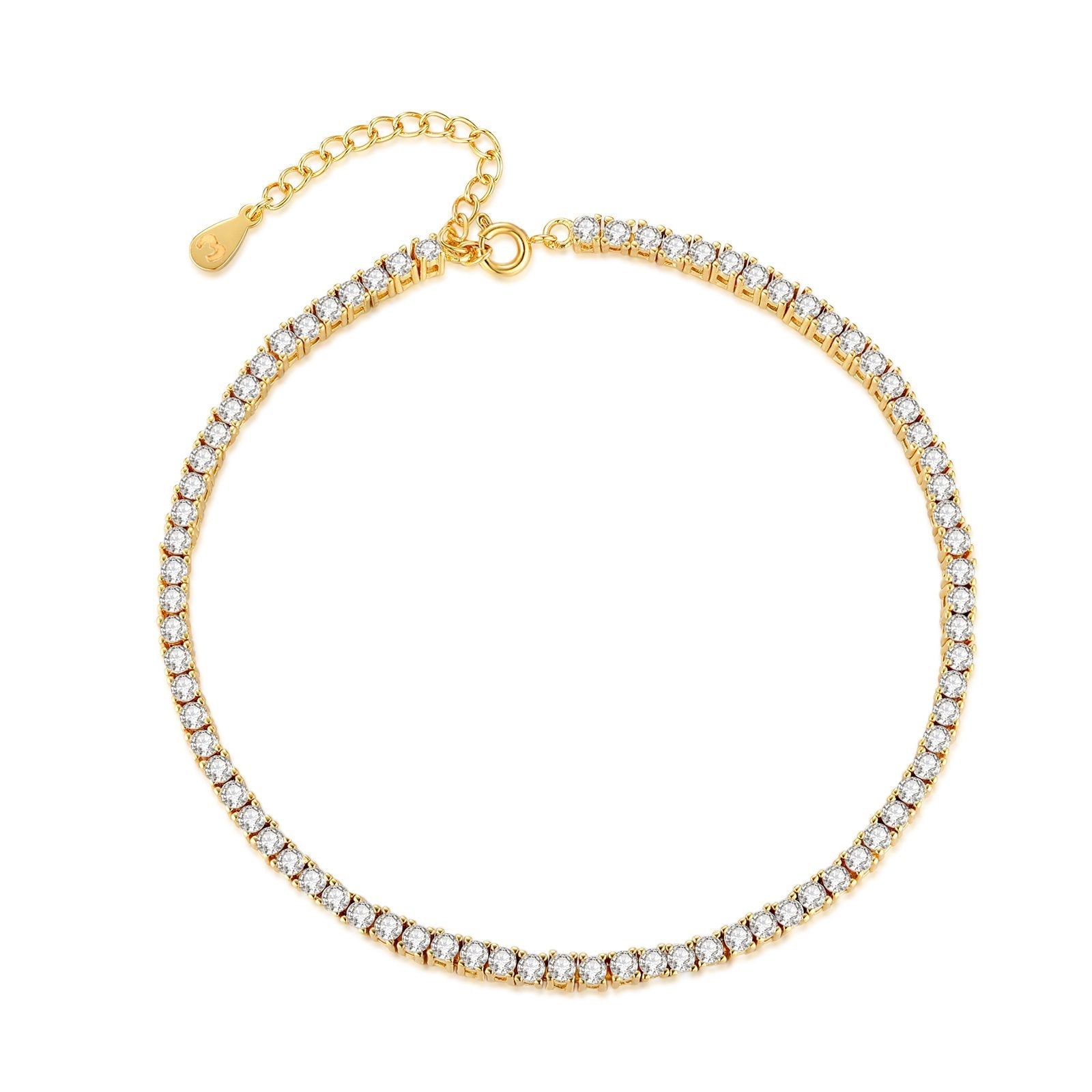 Pulsera de tobillo deslumbrante con pequeños zircones brillantes engastados en elegantes cuadrados de cobre.