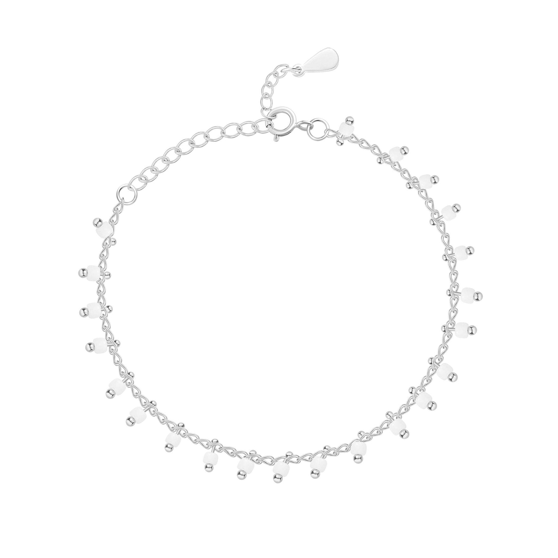 Pulsera Ajustable decorada con elegantes pequeñas bolas blancas, fabricada en acero inoxidable de alta calidad (316L).