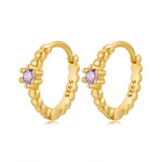 Aros de Pendientes Elegantes con un diseño encantador de pequeñas bolas y una zirconia violeta centrada, elaborados en plata esterlina (925).