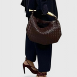 Descubre el bolso Woven Gerda, una fusión perfecta de artesanía, estructura y elegancia. Hecho de cuero vegano de primera calidad, su intrincado diseño tejido resalta la atención al detalle y la estética atemporal de la marca.
