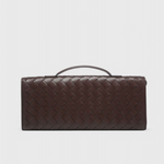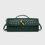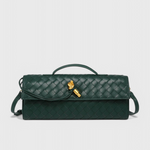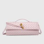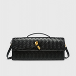 Clutch Melanie: Estructurada y sofisticada, esta clutch eleva tus esenciales diarios con una elegancia moderna. Su silueta delgada y alargada, junto con un detalle escultórico de nudo dorado, la convierte en una pieza única.
