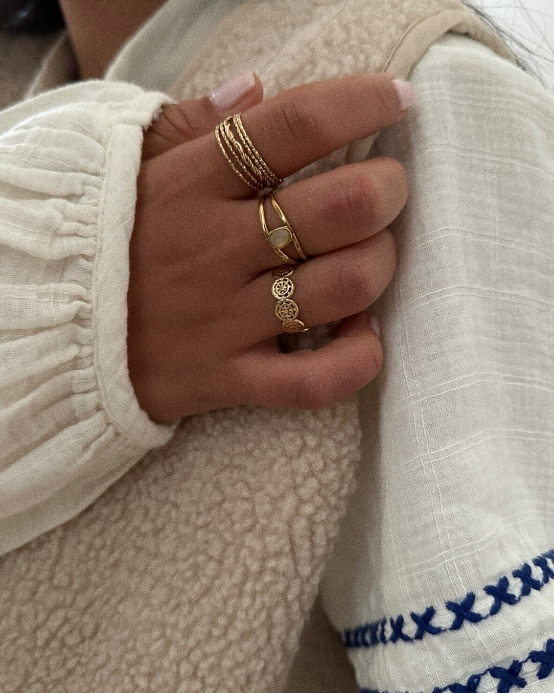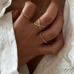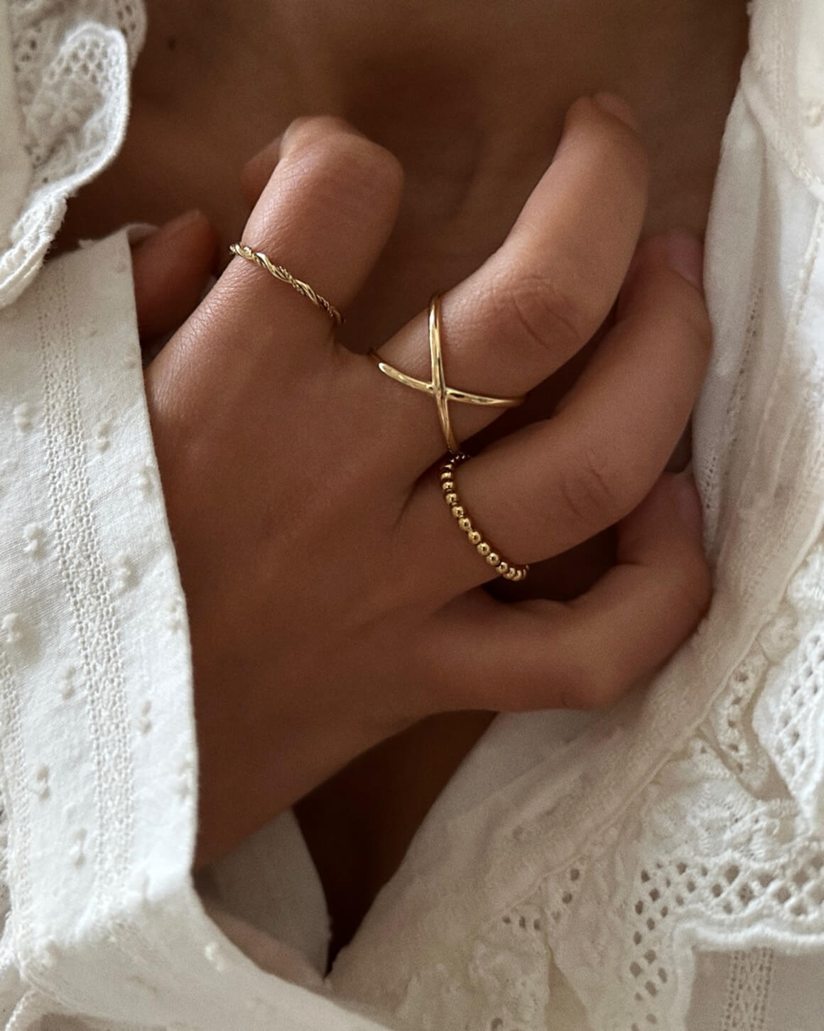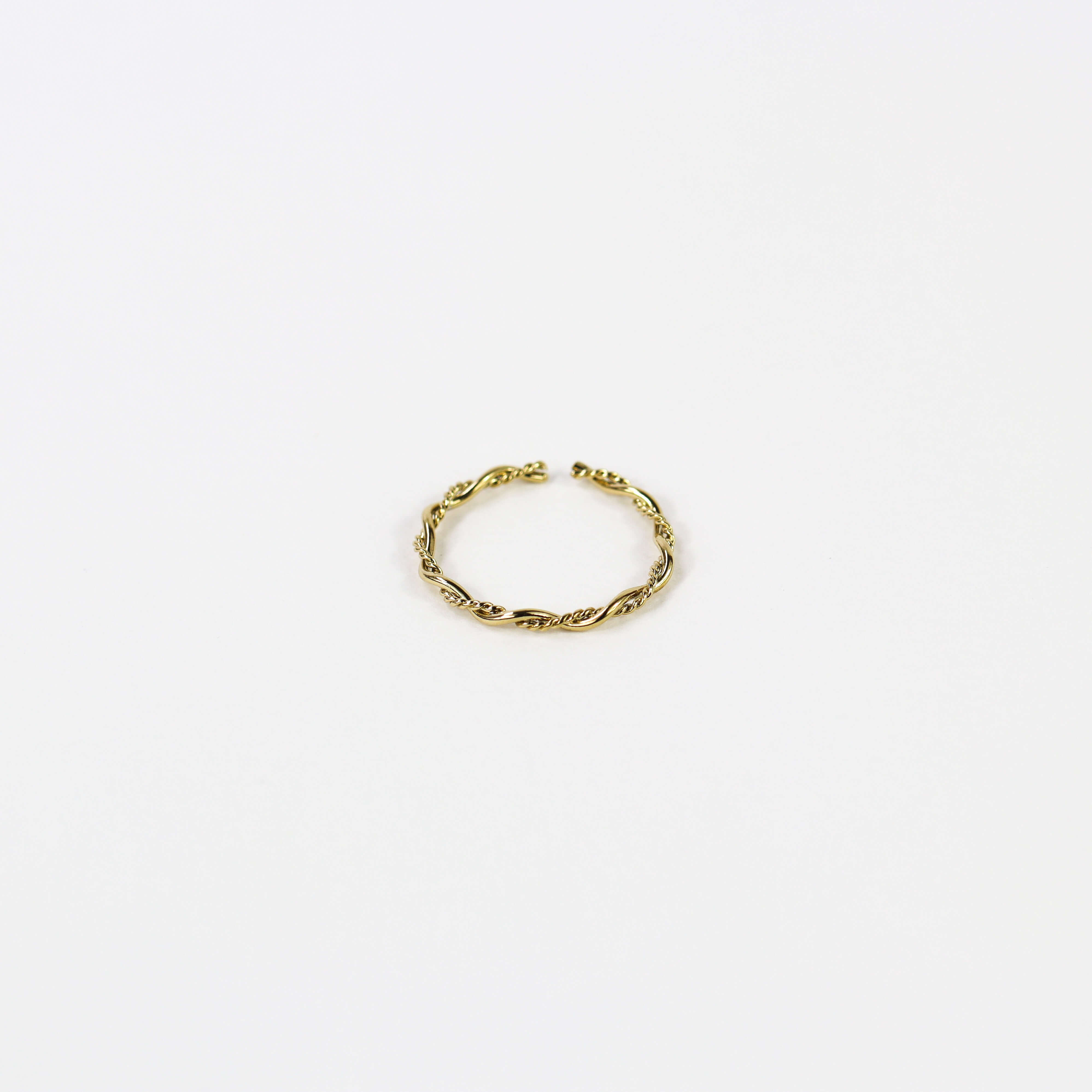 Anillo de Banda Dorada con un elegante detalle trenzado que añade un toque de sofisticación a cualquier atuendo.