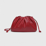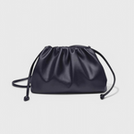 Elaborado con suave cuero vegano, su diseño inspirado en dumplings combina un estilo juguetón y pulido.