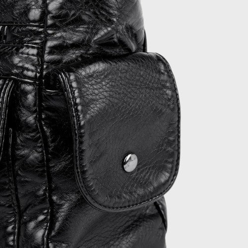 • Material ecológico: Cuero vegano suave y sostenible.
