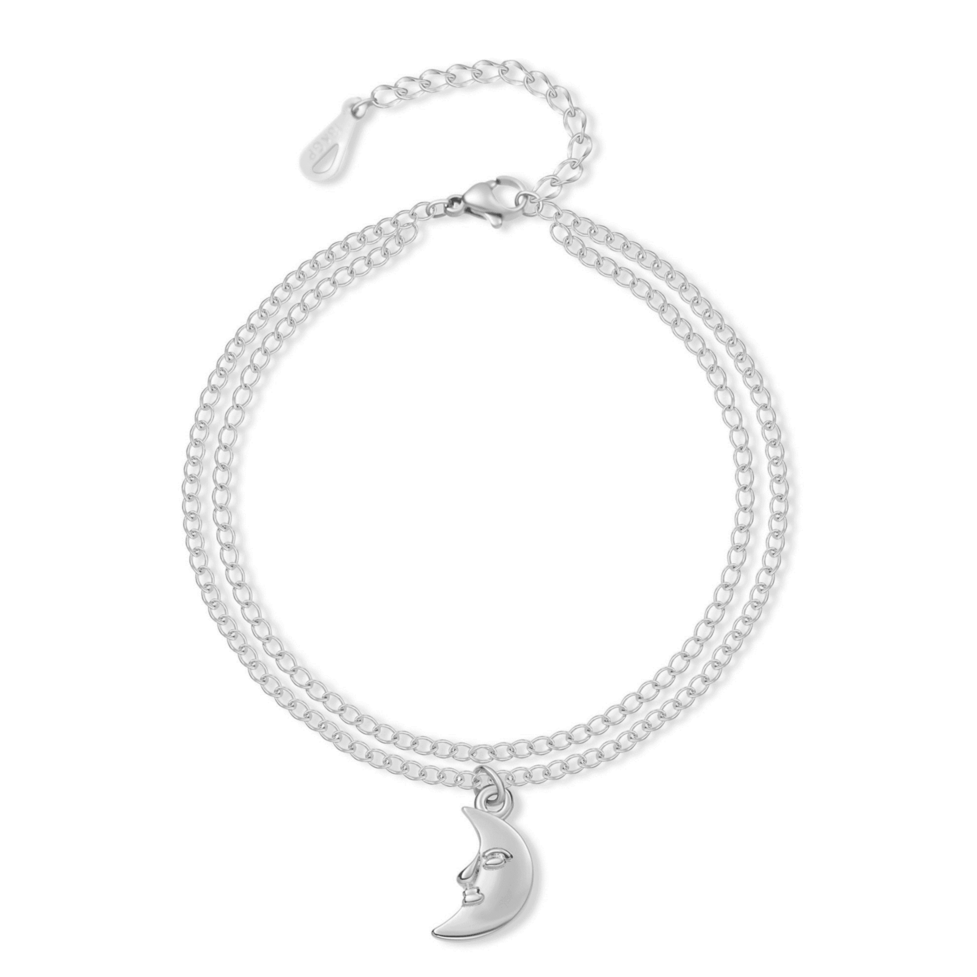 Pulsera de Tobillo Doble Cadena con Media Luna