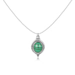 Descubre este collar único que presenta una esfera ovalada verde con detalles a rayas, elaborado en plata esterlina (S925).