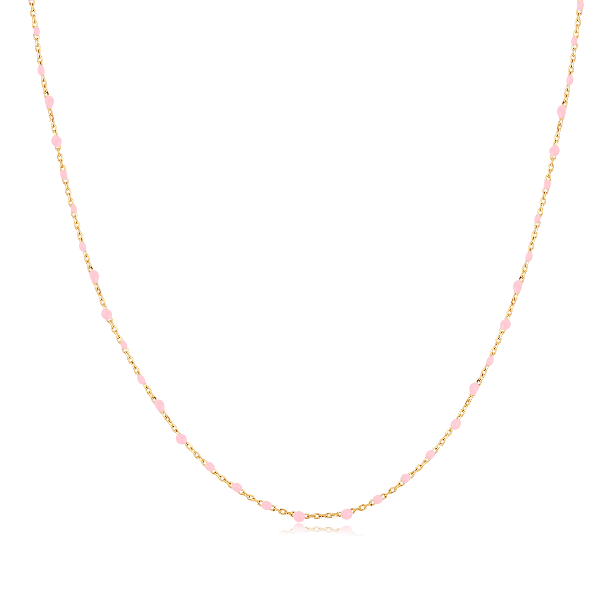 Este collar está formado por pequeñas bolas rosas de acero inoxidable de alta calidad (316L), garantizando durabilidad y estilo.