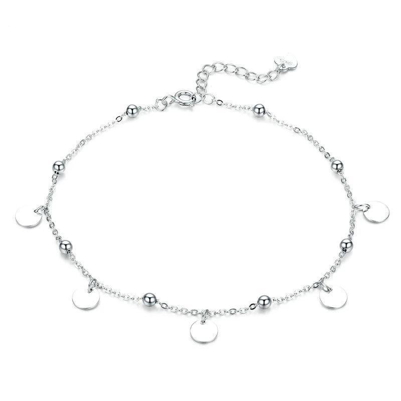 Pulsera de Tobillo Elegante con círculos planos y delicadas bolitas, elaborada en plata esterlina (S925).