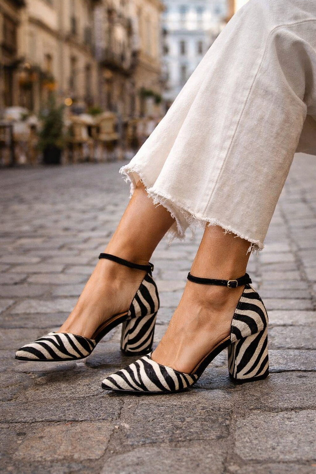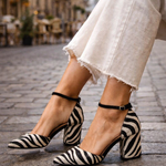 Las sandalias Zebrina son perfectas para quienes desean destacar sin renunciar al confort. Su patrón inspirado en la cebra, combinado con una correa femenina al tobillo y un tacón estable, crea un equilibrio ideal entre estilo audaz y elegancia sofisticada. Una pieza versátil que funciona tanto de día como de noche.